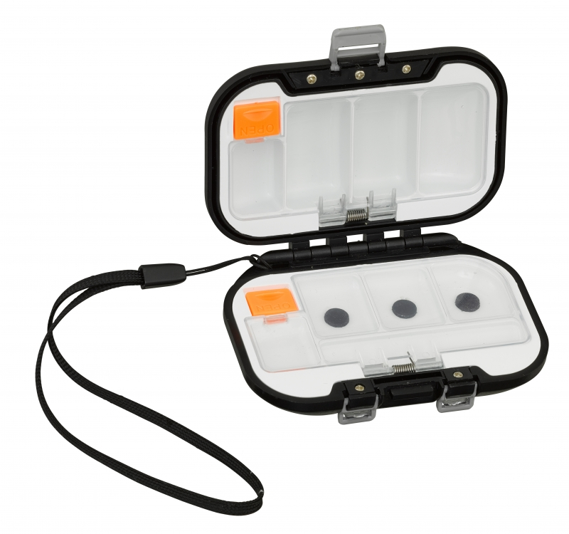 Een waterdichte box voor de bescherming van het belangrijkste klein materiaal (haken, wartels, etc.). Compact en praktisch.