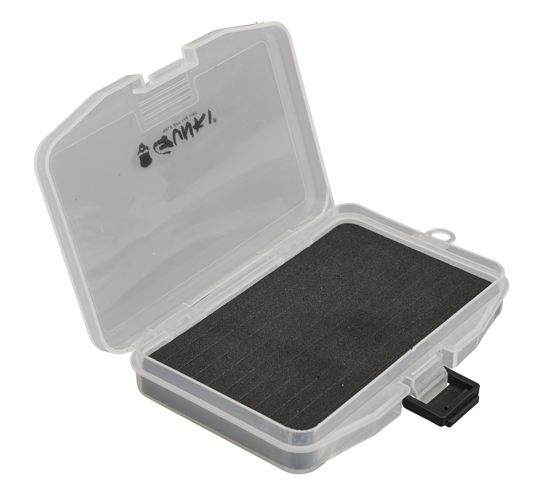 Extra ondiepe, doorzichtige kunstaasbox die weinig plek inneemt. Hierin bevindt zich een EVA-plaat die voorzien is van 10 sleuven (afstand 1 cm). U hoeft alleen maar de enkele haak van de lepels in de sleuf te drukken en alles is overzichtelijk opgeborgen. Met oog voor bevestiging aan een koord.