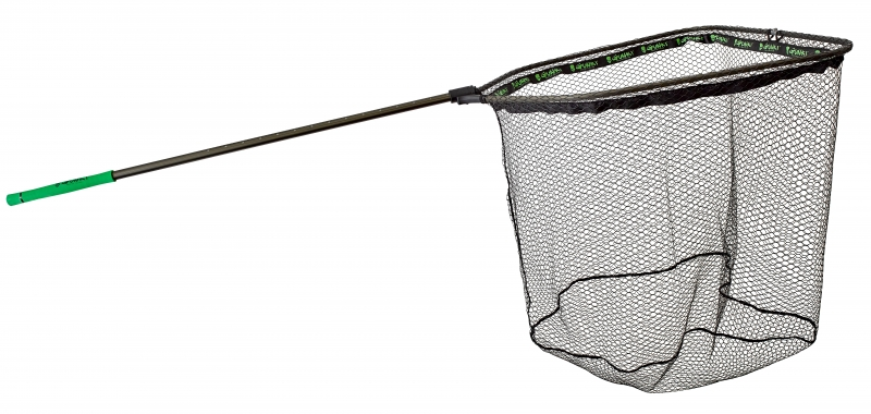 Compact en ruimtebesparend klapnet voor de bootvisser. Dankzij een geniaal ‘two turn’ bevestigingssysteem is het net met de steel verbonden en binnen enkele seconden klaar voor gebruik. Sterk 1,2 mm dik aluminium frame. Grofmazig net met een vlakke bodem en voorzien van een visvriendelijke PVC coating. Comfortabele EVA handgreep met centimeterindicatie voor het meten van de vis. Een sterk net voor grote vis!