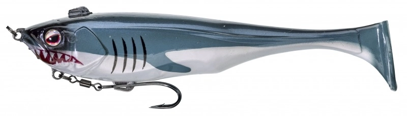 De DUNKLE 7′ is een zachte swimbait vol met innovaties. Ontworpen voor bass en snoek helpt het zware lichaam om grote afstanden te bereiken, maar je kunt er ook prima mee skippen in het struikgewas of onder steigers. De DUNKLE is voorzien van een superscherpe dubbele haak, gemonteerd met een splitring en wartel. De haak wordt dankzij een clip tot het moment van een aanbeet in de optimale positie gehouden en kan daarna vrij bewegen. Om ook op een met stenen en obstakels bezaaide bodem te kunnen vissen kan men de dubbele haak van het onderste oog verwijderen, hier een gewicht in hangen en de dubbele haak in de clip op de rug monteren. Geniaal! De forse kop wordt snel slanker tot aan de indrukwekkende staartpeddel. Hierdoor kan de DUNKLE opvallend langzaam worden gevist. In 6 kleuren verkrijgbaar. Must have!