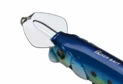 The RISERBAIT 015P is a flapper style popper lure fitted with an additional metal lip to create a more erratic darting swimming action. The perforated mouth generates splashes of water and leaves a trail of bubbles in its wake that flash and sparkle enticingly like a fleeing prey fish. The lure works best with fish that respond to flapper style baits and work particularly well at imitating the fish feeling from trevally and tuna attacks. The bubbles trail confuses fish and provokes them to take this bait even if it is larger than the rest of the prey fish being chased. The lure is dense for its size and this helps casting even in tricky windy conditions. This ‘Tropicalised’ version of a RISERBAIT has been fitted with our Wire Through system to attach the hooks and will handle tough fighting like yellow and red tuna, trevally, leerfish and bluefish. The RISERBAIT 015P is fitted with OWNER ST 66 triple hooks that are strong and treated against corrosion. We recommend this bait for: Bluefin tuna fishing in the Mediterranean or Atlantic. Yellowfin Tuna fishing off the Pacific coastline of Central America or in the Indian Ocean. Jack Crevalle fishing of West Africa. Giant trevally fishing off the west coast of Madagascar. Rooster fish in Mexican, Costa Rican and Panamanian waters particularly when they are hunting off beaches. All marine predators that hunt close to the surface.