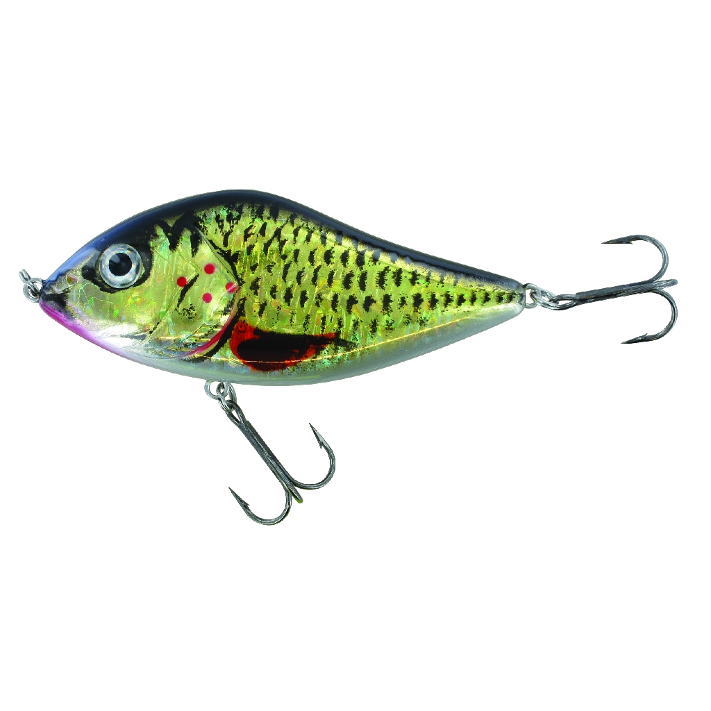 Een jerk-plug in een zinkende uitvoering. Duikdiepte 1-4 meter. Een jerk-plug met natuurlijk lijkende schubpatronen in goed vangende kleurcombinaties. Perfect voor de snoekvisserij. We bevelen een hengel met een stevige ruggegraat aan. Ook bij uitstek geschikt voor het trollen.