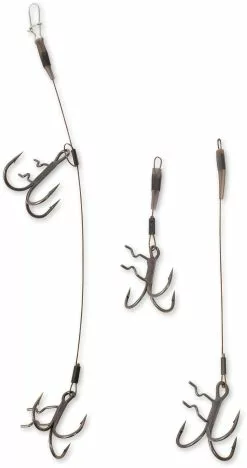Wanneer een vis een softbait pakt, dan heeft de vis het kunstaas niet altijd geheel in de bek. Wanneer het moeilijk is om goede aanbeten te krijgen, dan kan een extra dregje uitkomst bieden! De nieuwe Q-Stingers maken dat jij weer een grotere kans maakt om in die gevallen vis te haken. Dankzij de unieke Q-dreg met een klauw aan de zijkant van de haaksteel, kunnen alle drie de haakpunten nu langs de softbait gepositioneerd worden. Je hoeft geen haakpunten meer in de softbait te steken, je kunt nu met alle drie de haakpunten de vis haken! Geproduceerd volgens de hoogste kwaliteit in de belangrijkste shadlengtes en met AFW roestvrij staaldraad met een trekkracht van 28 kg en AFW sleeves. Een handig detail is de stugge rubber tube boven de lus waarmee de stinger bevestigd wordt, de stinger kan nu aangebracht worden aan de jighaak of aan het haakoog.