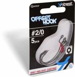 De 4Street Offset Hook is een offset-haak met een ‘wide gape’ haakbocht, om zacht aas zonder kinken nog natuurlijker en stabieler lopend aan te kunnen bieden. De reden hiervoor is de unieke ‘bait holder coating’ in de bocht van de haak, waardoor de softbait niet meer zo snel kan verschuiven en langer in de juiste positie blijft. Het oog van de 4Streer Offset haak is gesoldeerd en heeft geen opening, waardoor je ook zeer dun onderlijnmateriaal kunt gebruiken.