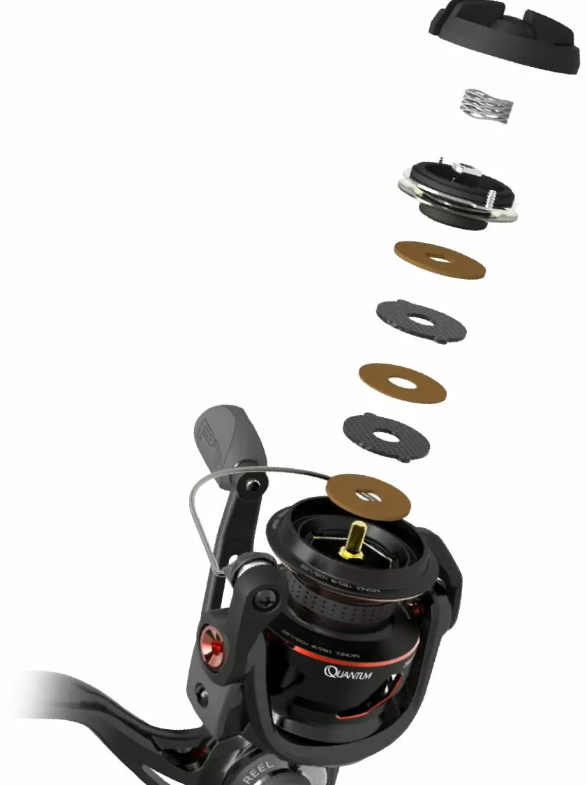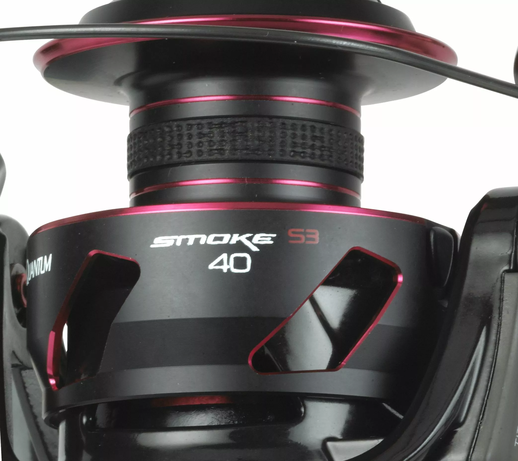 Voor de Quantum Smoke S3 geldt ‚Metal where it matters’, want ook de derde editie van de Smoke heeft het optisch aansprekende Skelett-Design. Hierdoor wordt het gewicht drastisch gereduceerd, zonder concessies aan de stevigheid te doen. Overal, waar metaal gebruikt moest worden, werd het ook ingezet, maar wel gewichts-geoptimeerd. Het nieuwe Reel Engine Design, afgekort RED, zorgt samen met het ultra sterke metalen frame voor een zijdezachte, zeer soepele loop en een optimale lijnopspoeling – zelfs bij het gebruik van zeer dunne gevlochten lijn.De rotor bestaat uit een samensmelting van kunststof, wat ook ingezet wordt in de ruimtevaart, en lange carbonvezels (ca. 10mm). Extreem moeilijk om te verwerken, maar het resultaat is een enorme stevigheid. Daarnaast schittert de Smoke door het gebruik van de zogenaamde ‚Braid Band‘, een speciaal ontworpen rubberen ring om de molenspoel, die zorgvuldig opspoelen van gevlochten lijn mogelijk maakt, zonder eerst voor te moeten spoelen. Gevlochten lijn krijgt optimaal grip door de Braid Band waardoor doordraaien volledig is uitgesloten.