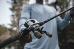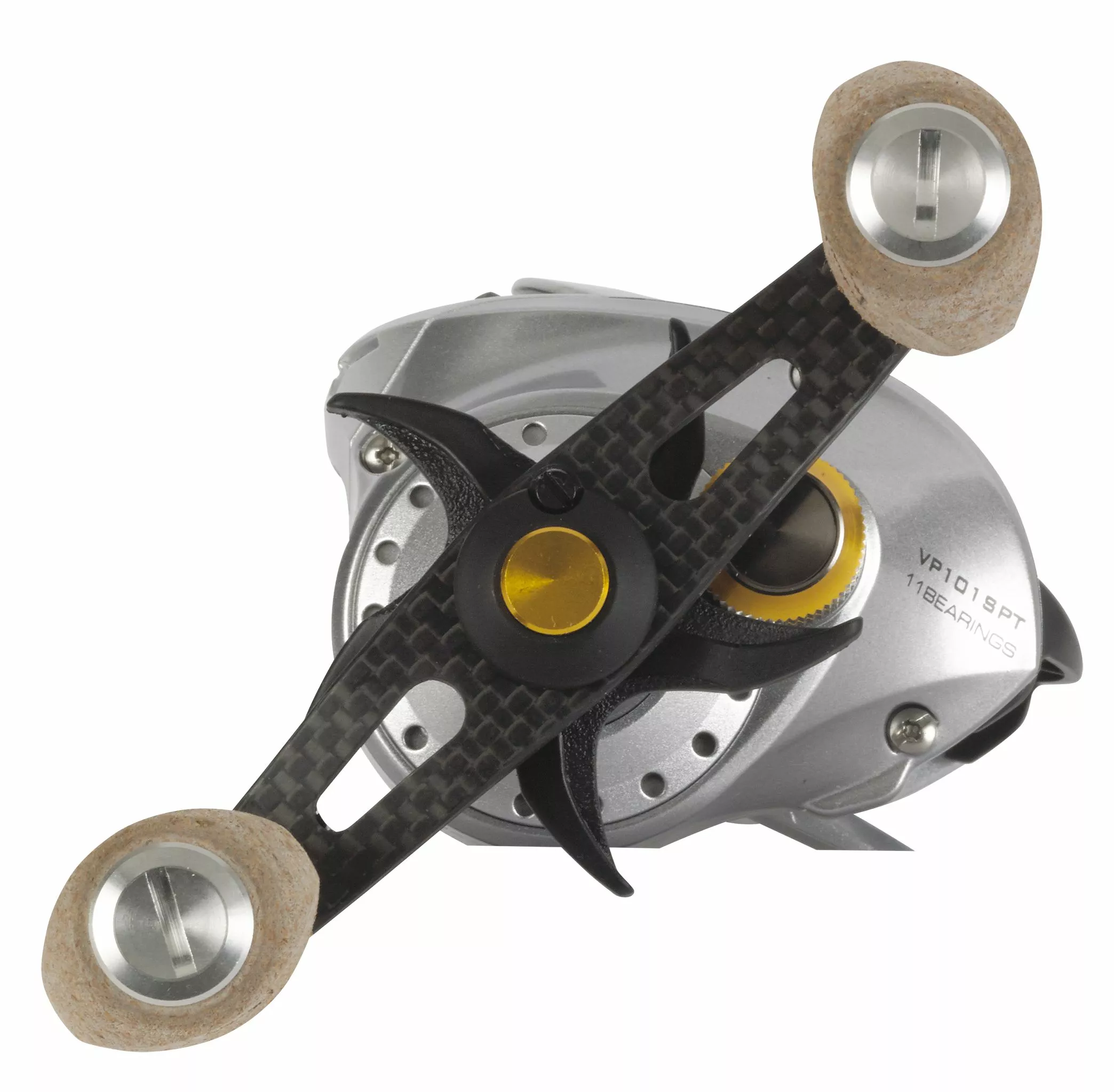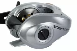 Een kleine baitcaster met enorm potentieel. De Vapor 101 SPT is een ‚Low Profile‘ uitvoering met een zeer stabiele maar toch erg lichte body. De Vapor 101 SPT loopt door zijn 10+1 kogellagers geweldig soepel. Het perfect werkende ACS Infinite Cast Control System maakt het mogelijk dat je zelfs met erg licht aas toch zeer goed kunt werpen.Het keramische slip-systeem en de gemonteerde extreem robuuste tandwielen ronden het geheel af. De twee opvallende slingerknoppen van kurk zorgen voor het juiste houvast tijdens het binnenhalen.De Vapor SPT is een Slow Speed Modell en is daardoor perfect geschikt voor het jiggen met softbaits en het vissen met twitchbaits.