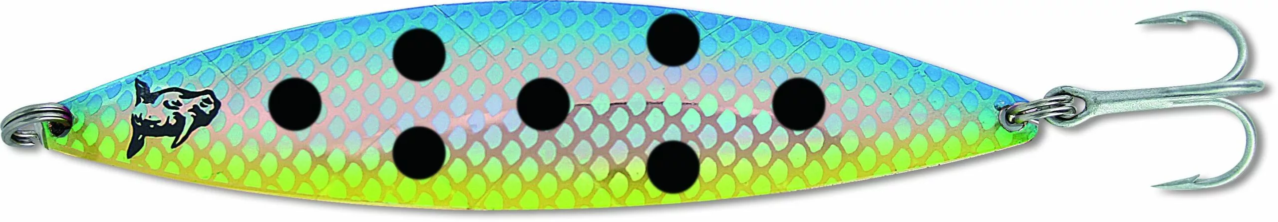 Een verbeterd aanzien door het blanke koper. Door de combinatie met metaalblauw en neon-geel vangt dit kunstaas vooral goed bij zonlicht en in de bovenste tien meter van de verschillende waterlagen.