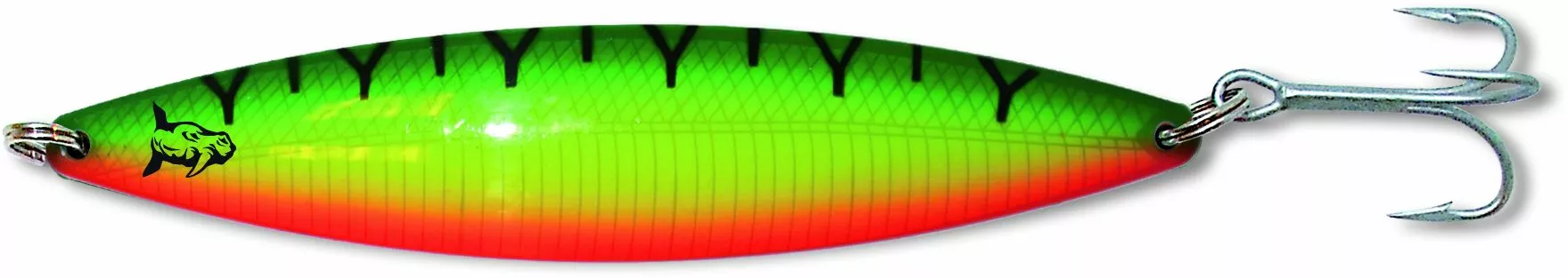 Een beproefde kleurencombinatie uit het zoete water, waarvoor ook op zee interesse bestaat. Dit patroon combineert alles waar roofvissen gek op zijn.