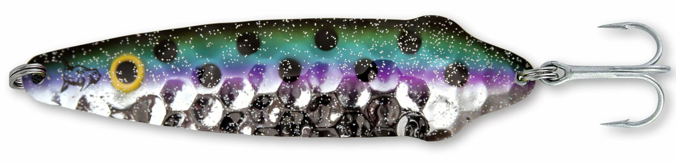 Wanneer grote haringen in het wateroppervlak tuimelen, dan levert dit kunstaas gegarandeerd zalm op. Een van mijn favorieten aan het Inline-Bord op een onrustige zee.