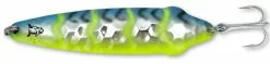 De Zweedse vlag in een agressief airbrushontwerp. De zalmen zijn er liefhebbers van! Gevist op dieptes van nul tot tien meter diep en liefst bij helder weer.