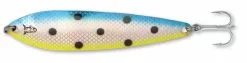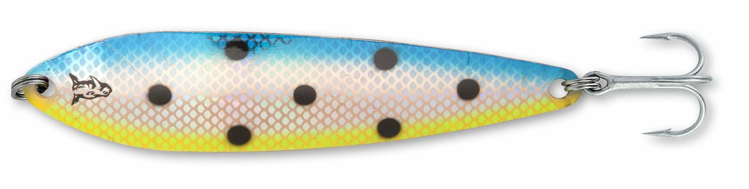 Een verbeterd aanzien door het blanke koper. Door de combinatie met metaalblauw en neon-geel vangt dit kunstaas vooral goed bij zonlicht en in de bovenste tien meter van de verschillende waterlagen.