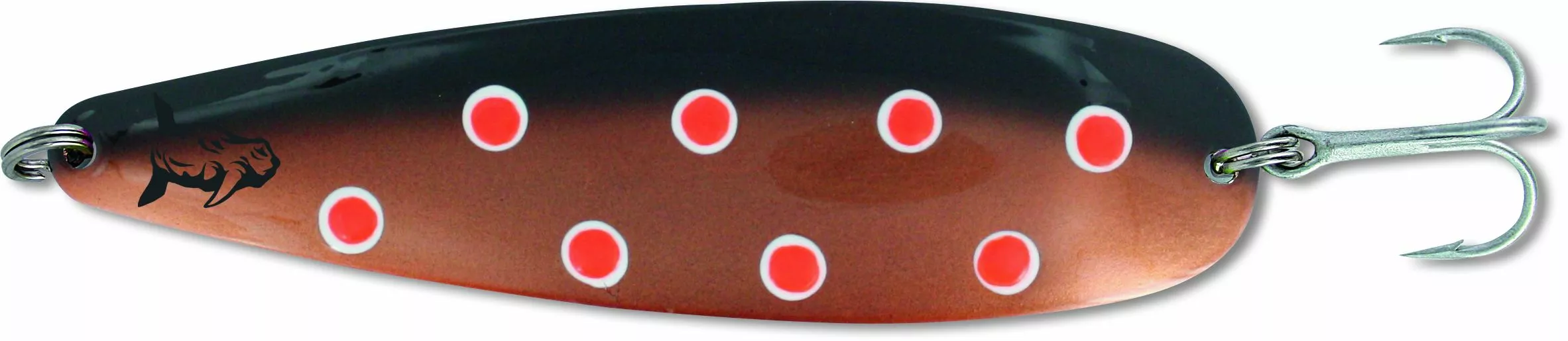 Opvallen tegen elke prijs: contrastrijke stippen met fluorescerend rood maken dat dit donker gekleurde kunstaas opvalt in de massa van onopvallend gekleurde bodemvissen. Met name kabeljauw kan geen weerstand bieden aan dit patroon.