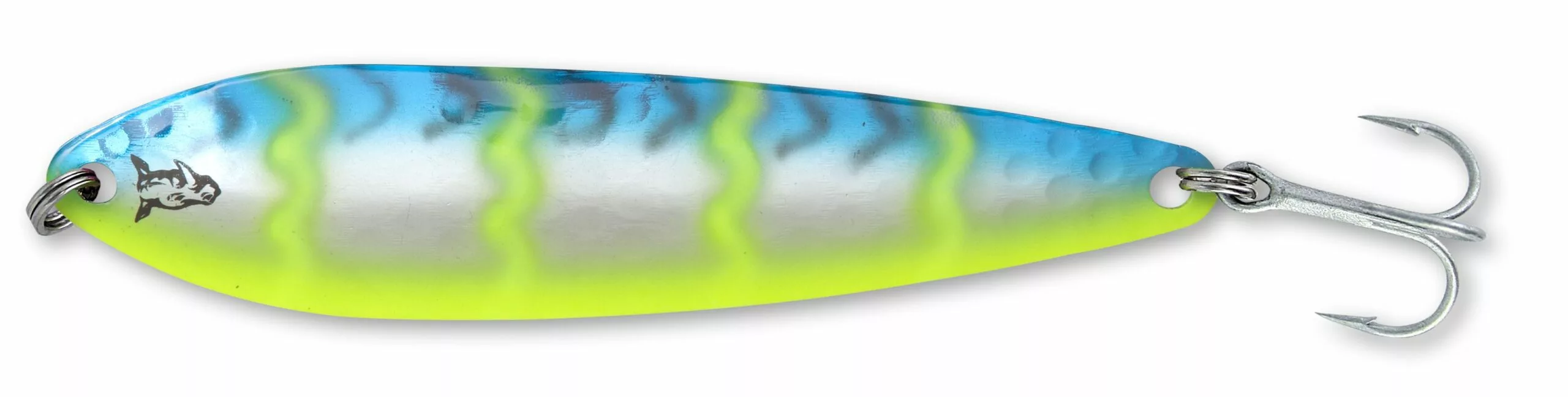De Zweedse vlag in een agressief airbrushontwerp. De zalmen zijn er liefhebbers van! Gevist op dieptes van nul tot tien meter diep en liefst bij helder weer.