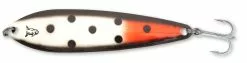 Een prima toevoeging op het geliefde zwarte en ‘glow’ patroon en door het fluorescerende rood ter hoogte van de haak heeft deze lepel een extra aantrekkingskracht op de salmoniden. Een patroon dat op diepte gevist kan worden, liefst op 18 meter en meer!