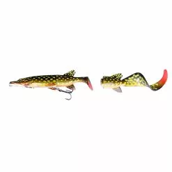 Een superrealistische Baby Pike-imitatie boordevol innovatieve functies! Ongeëvenaarde 3D-gescande details houden zelfs de meest uiteenlopende roofvissen voor de gek en zorgen voor brute aanvallen. De peddelstaart geeft het kunstaas een ongelooflijke levendige en rockende actie met een klikkende rammelkamer die de roofvis gek maakt! De Curl-staart kan ultra langzaam worden gevist, waardoor het voorste deel van het kunstaas, zeer stabiel en de staart met een verleidelijke en provocerende actie achterblijft. Een dodelijke combinatie op variërende en vaak voorzichtige grote snoek! Wanneer de staart op de staart naar beneden wordt geschroefd – de “opwaartse kracht” op het staartgedeelte – duwt de kop van het kunstaas naar beneden – zodat deze onder het oppervlak in min of meer dezelfde diepte helemaal naar binnen loopt – Draai de staart omhoog , en “neerwaartse kracht” op de staart – zal het hoofd naar boven dwingen – zodat de snoek naar de oppervlakte komt en precies onder het oppervlak loopt, waardoor een super wake-effect ontstaat! Met de innovatieve ontgrendelingsinstallatie kan de achterhaak loskomen van het kunstaas lichaam wanneer een vis wordt gehaakt. De rig is gemonteerd op een ingebouwde wartel – zodat de vissen het heel moeilijk hebben om op het kunstaas te rollen en de kracht gebruiken om de haken eruit te trekken. Het slimme systeem beschermt ook het zachte deel van het kunstaas, om de Toothy-zone te blijven!