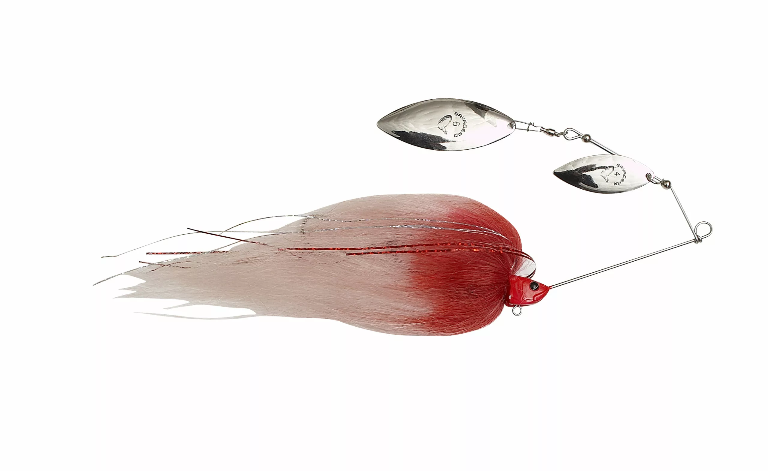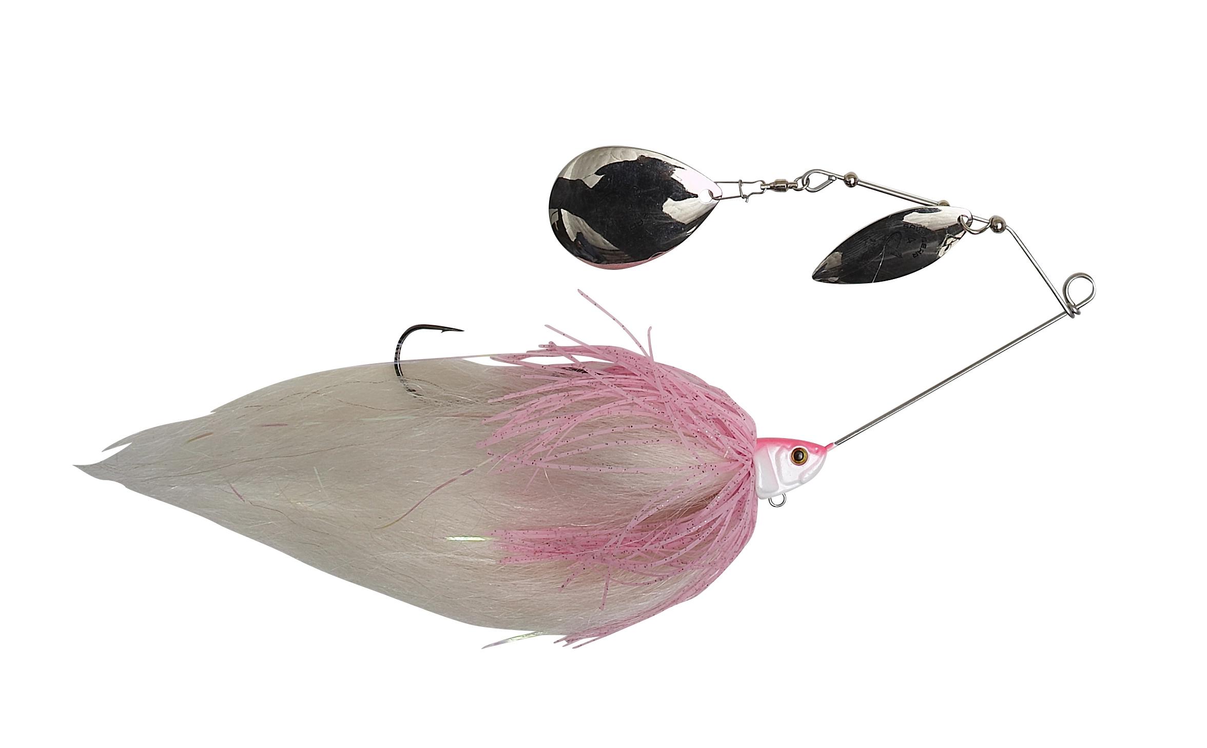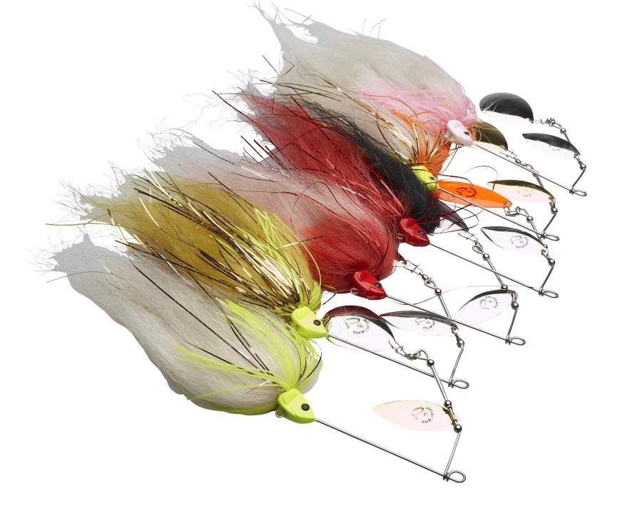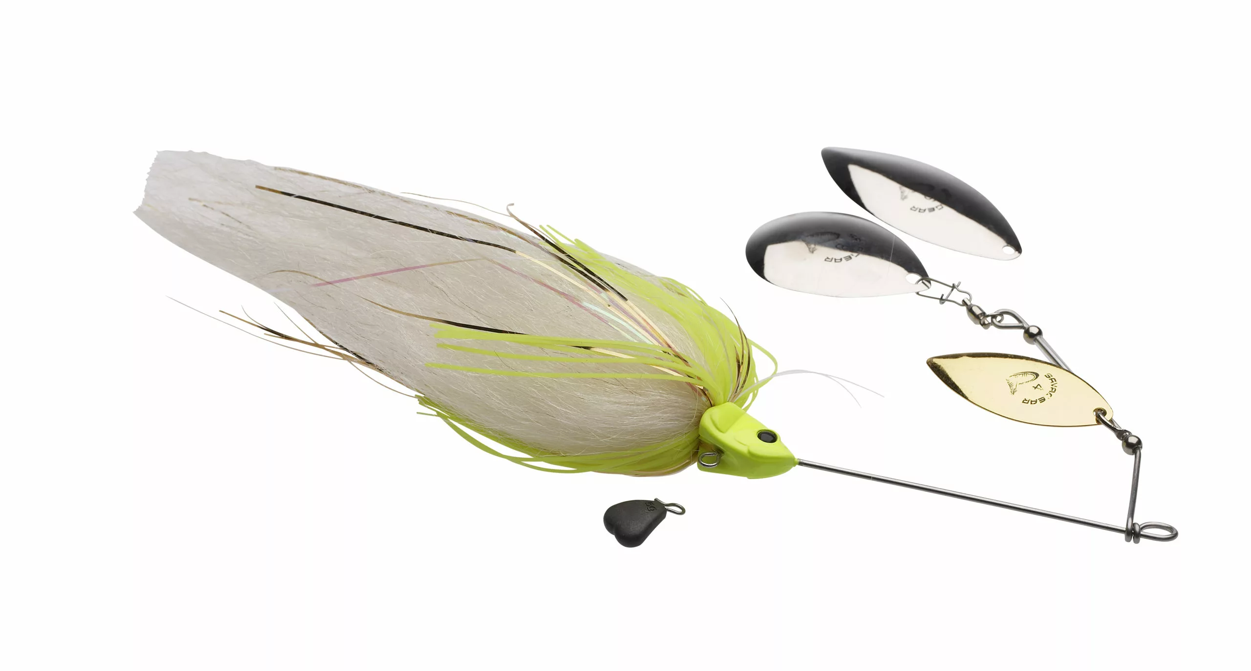 Mega-formaat spinner bait, met een extra groot en lang hoofdframe, voor uitstekende actie en innhaaking. Draai het vergrendelde roemoog, slingerende stingerhook. De kop heeft een oog onder de buik, dus het is gemakkelijk om extra gewicht toe te voegen aan vissen op elke gewenste diepte. De verwisselbare bladoptie, tussen wilg en colorado-blad, geeft 2 heel verschillende actiestijlen en visdiepten.