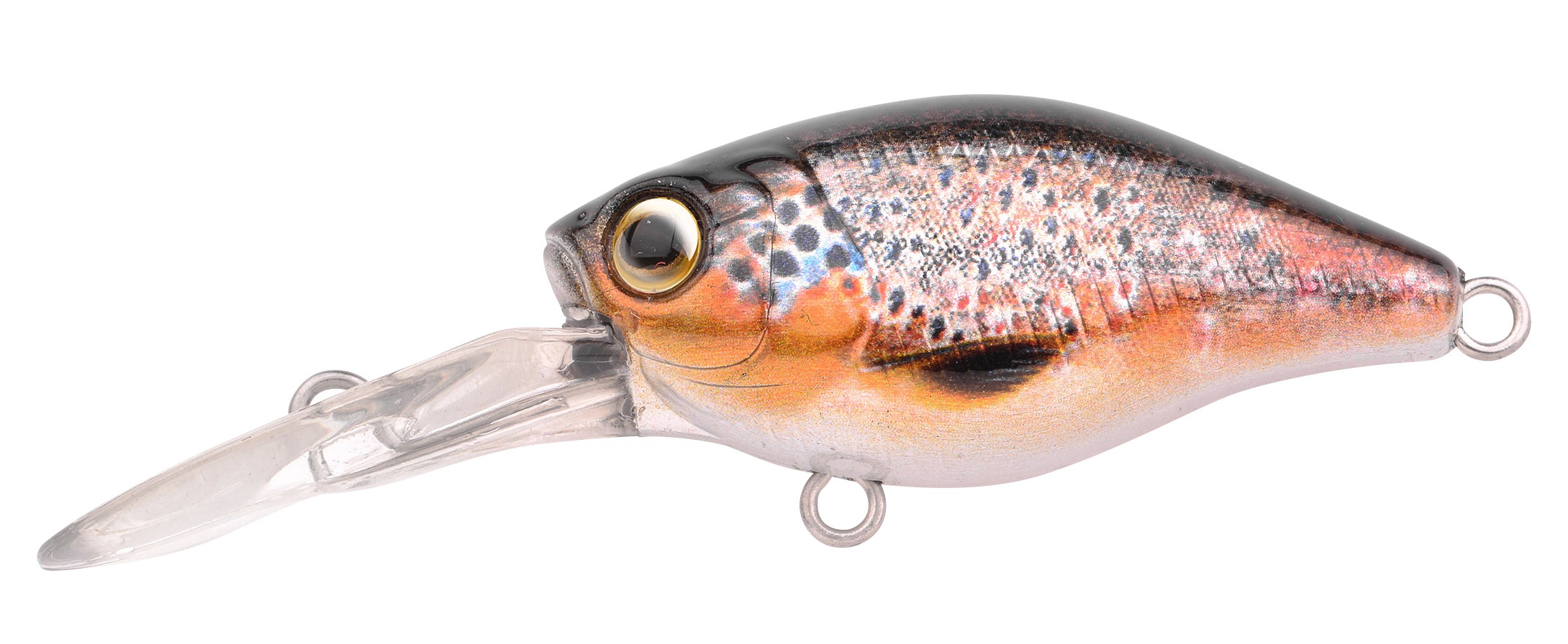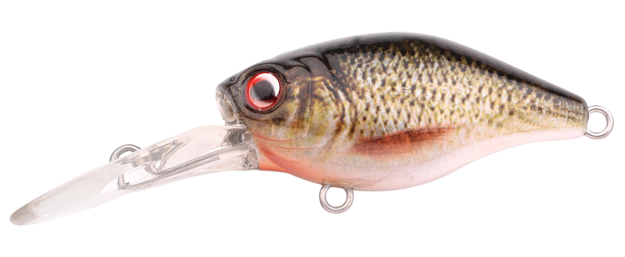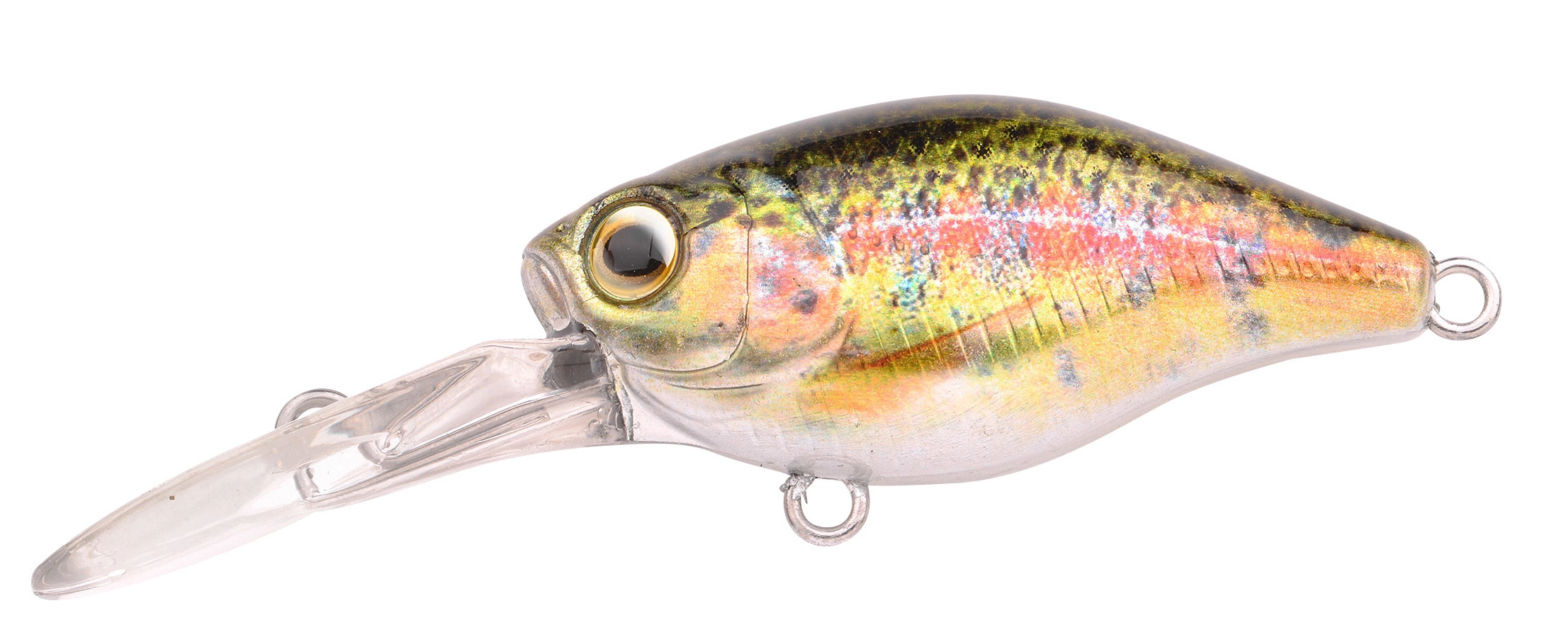 Een kleine 38mm crankbait die verkrijgbaar is in schitterende natuurlijke kleur patronen. De uitvoering met lange zwemlip duikt feilloos naar 80cm diepte, en de versie met korte zwemlip heeft een maximale diepgang van ca. 50cm. Met deze plugjes in je tacklebox ben je alle situaties de baas bij het vissen op grote baarzen, windes, roofblei en forel. De plugjes lopen ook bij hogere snelheid mooi stabiel door het water, waardoor ze bijzonder geschikt zijn in stromend water te vissen of zelfs te trollen achter de boot.