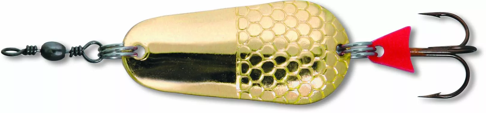 De klassieke altijd vangende lepel! Beschikbaar in drie standaardkleuren en meerdere gewichten, van de 6-grammer voor het lichte vissen op forellen tot de 45-grammer waarmee u de snoeken uit diepe rivieren kunt belagen.