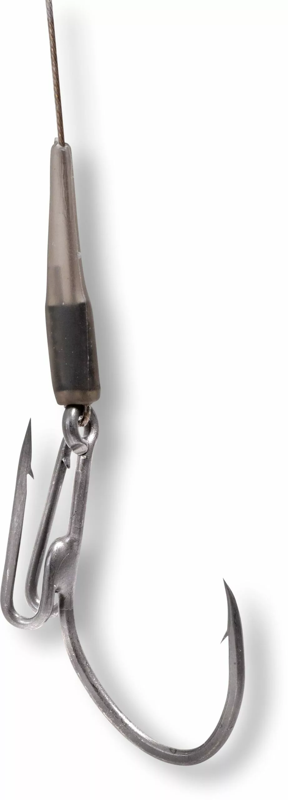 Float Rig Leader – kant-en-klare montages voor het dobber vissen met een dode aasvis, gemaakt met haken van carbonstaal die aan onze onopvallende staaldraad met een trekkracht van 30 lb (14 kg) zijn bevestigd. Om een hoge kwaliteit te garanderen is elke sleeve met de hand dichtgeknepen én gecheckt op treksterkte.