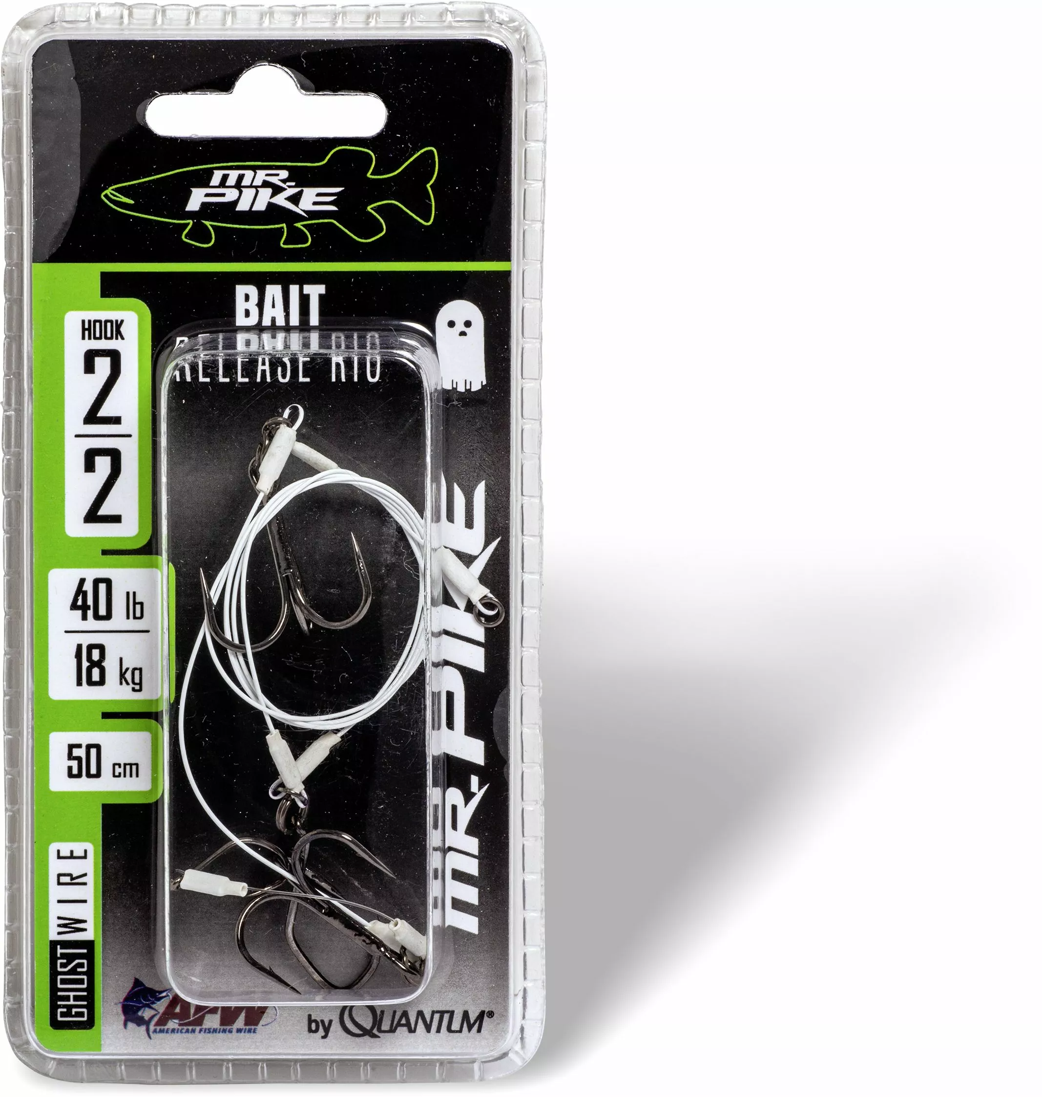 Ghost-Wire – het gloednieuwe en extreem onopvallende stalen onderlijnmateriaal voor het vissen in open water! Samen met de Deense sportvisexpert Jens Bursell hebben we twee perfecte snoekonderlijnen voor het vissen met de dobber en voor het vissen met een zwevende aasvis ontwikkeld. De ‘Bait Release Rig’ is zo samengesteld dat bij het zetten van de haak de aasvis los komt van de takel, waardoor de haken beter in de bek van de snoek blijven zitten. Tests over langere tijd hebben uitgewezen dat er hiermee tot 90% meer vis geland kan worden! Uitgevoerd met hoogwaardige carbonstaal haken op 40 lbs (18 kg), ‘Ghost-Wire’ carbonstaal onderlijnmateriaal. Naast het unieke AFW onderlijnmateriaal worden ook uitsluitend originele AFW sleeves in het juiste formaat gebruikt, om voor een gelijkblijvende kwaliteit te zorgen. Alle onderlijnen zijn met de hand vervaardigd en onderworpen aan een strenge eindcontrole.