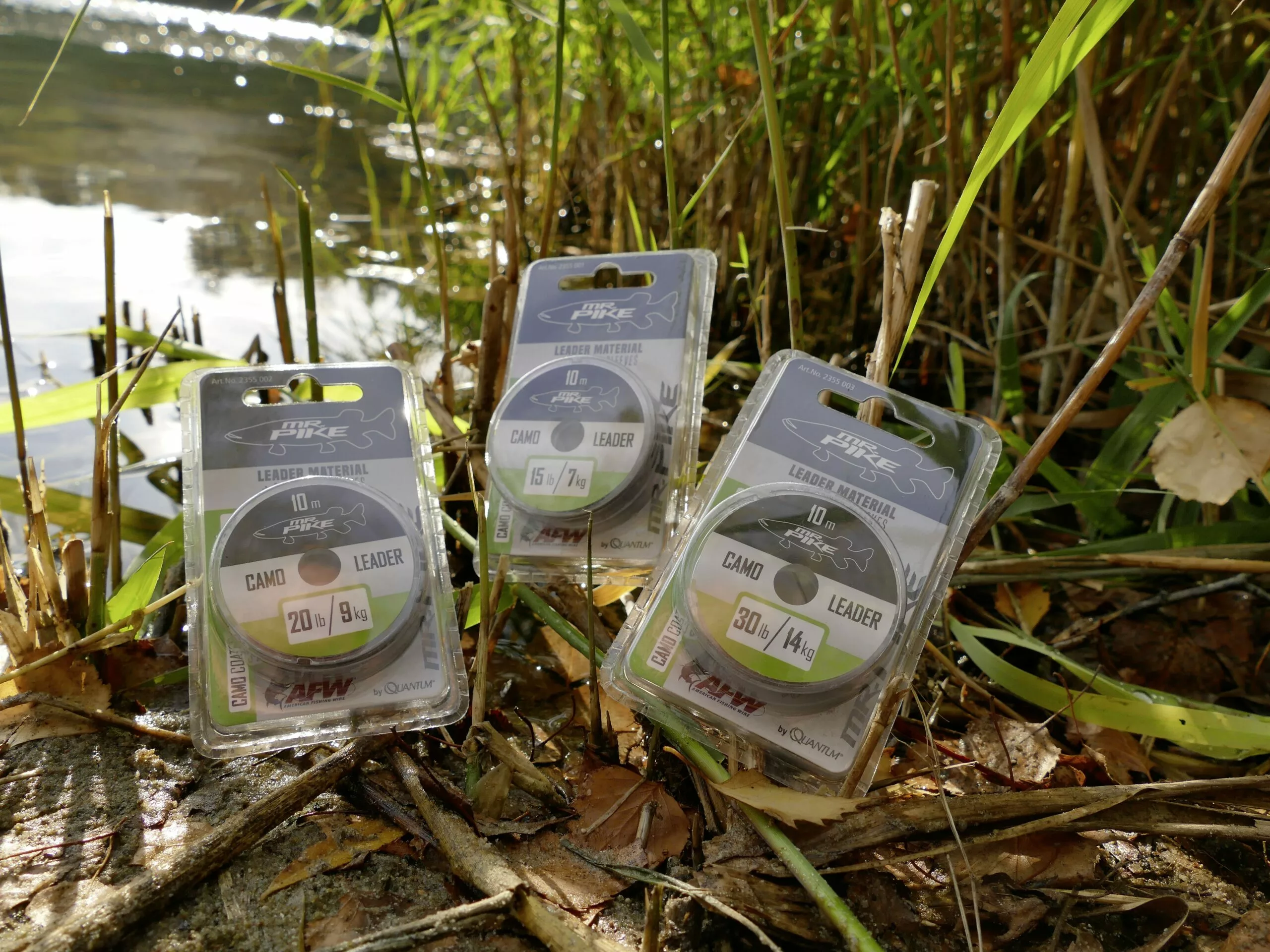 Met American Fishing Wire brengt Mr. Pike stalen onderlijnmateriaal in camouflagekleuren op de markt dat tot 30 procent dunner is dan vergelijkbare, met nylon beklede materialen. Het staaldraad is nagenoeg onzichtbaar tegen de bodem . Tijdens het testen bleek overduidelijk dat vissers die met een onderlijn van dit gecamoufleerde materiaal visten meer en grotere vissen vingen dan vissers met standaard onderlijn materiaal. Mr. Pike ‘Camo Leader’ Materiaal wordt in diverse trekkrachten verkocht op spoelen van 10 meter – ideaal voor de visserij op paling, snoekbaars en snoek.