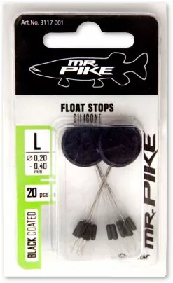 Het is niet altijd gemakkelijk om ook grote dobbers op de juiste diepte af te stellen en dat is de reden waarom siliconen stoppertjes van hoge kwaliteit een must zijn. De zwarte Mr. Pike ‘Float Stops’ zijn hiervoor de perfecte oplossing. Ze zijn geschikt voor zowel nylon als gevlochten lijn en passen perfect bij lijndiktes van 0,20 – 0,35 mm, , 0,30mm – 0,60 mm