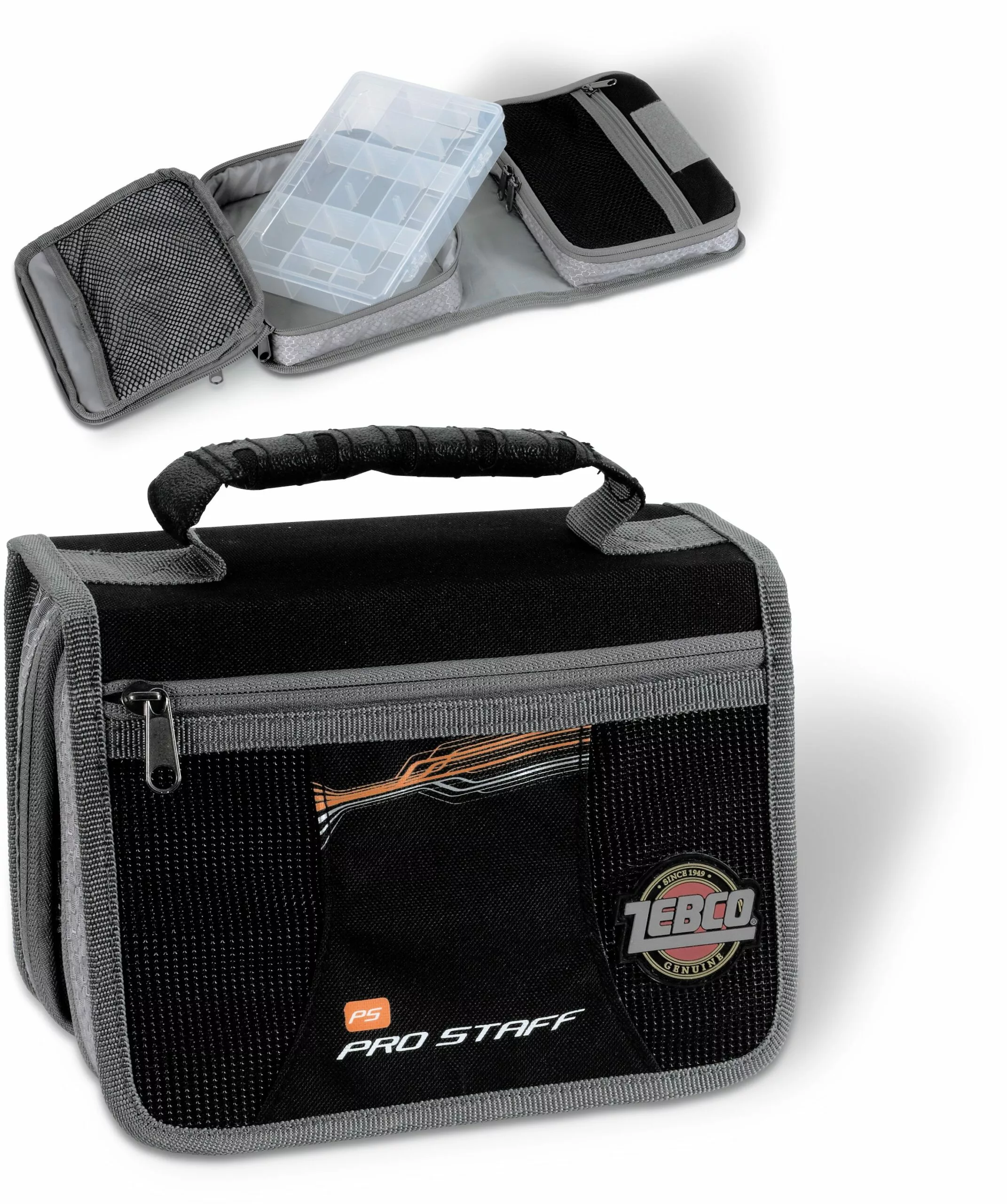 De Zebco Pro Staff tassenserie maakt indruk met zijn ultramoderne ontwerp en eersteklas afwerking, en dat voor gemiddelde prijzen. De Uni Tackle Bag is een veelzijdige tas waarin u montages in afzonderlijke mappen kunt opbergen en kleinmateriaal in een klein doosje (meegeleverd). Met rits en handvat.
